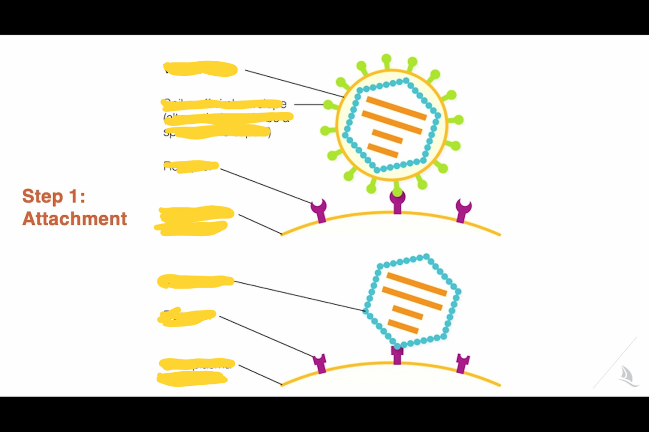 Once ___1___ proteins interact with ___2___ proteins found on the surface of the ___3___, the virus attaches, and the envelope fuses with the membrane and opens, releasing the capsid into the cytoplasm
