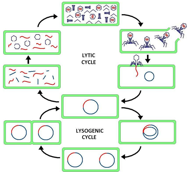 Lytic and Lysogenic. The lytic life cycle begins with viral entry, and upon successful replication causes severe strain on the host cell to the point of rupture. However, if the viral genome is integrated into the host genome without actively replicating (dormancy) it is considered temperate. However, certain external stresses may cause reactivation of the viral, and the lysogenic cycle then becomes lytic.