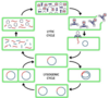 As the host cell replicates its DNA, it also replicates the viral DNA. However, the production of ___1___ via ___2___ and ___3___ is suppressed. Thus, the host cell may carry the phage DNA without risk of ___4___. However, under certain stress conditions, the prophage can reactivate, begin full replication of viral proteins, and re-enter a ___5___.