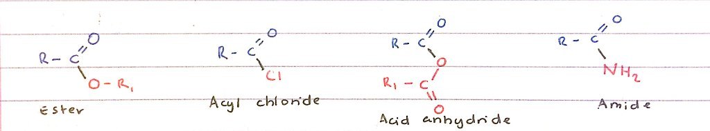 Carboxylic acid derivative = Compound that can be hydrolysed to produce a carboxylic acid