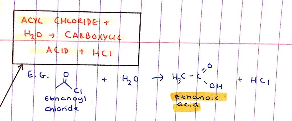 CH3COCl + H2O → CH3CONH2 + NH4Cl