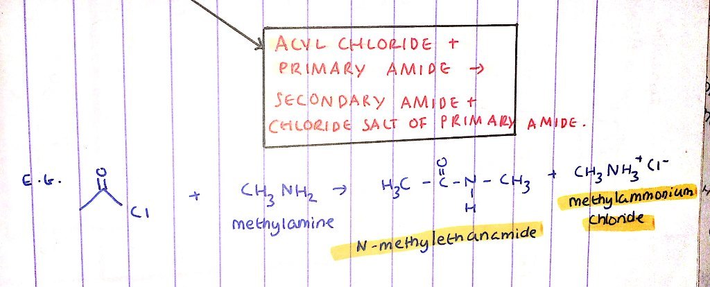 CH3COCl + H2O → CH3CONHCH3 + CH3NH3+Cl-