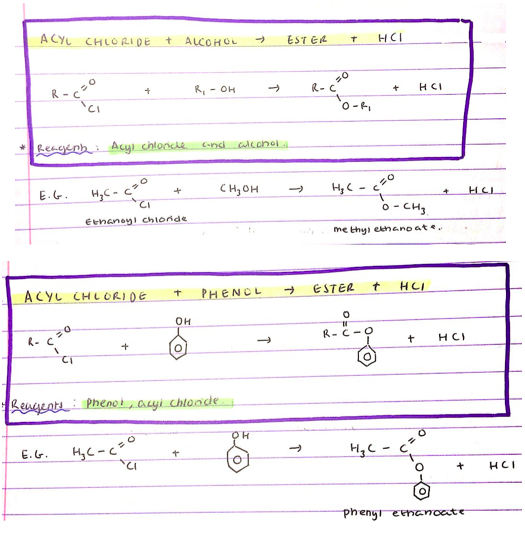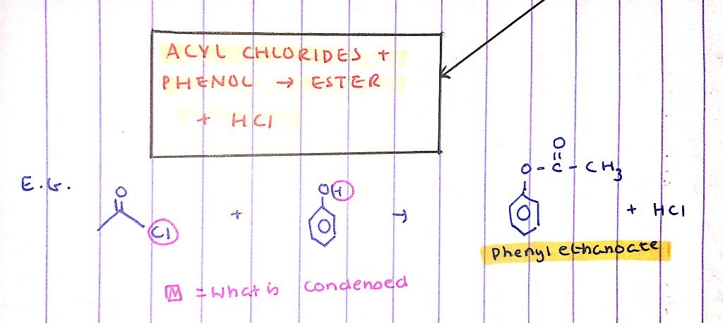 CH3COCl + C6H5OH → C6H5OCOCH3 + HCl