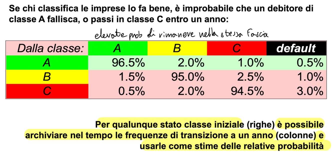 Se chi classifica le imprese lo fa bene, è improbabile che un debitore di classe A fallisca, o passi in classe C entro un anno