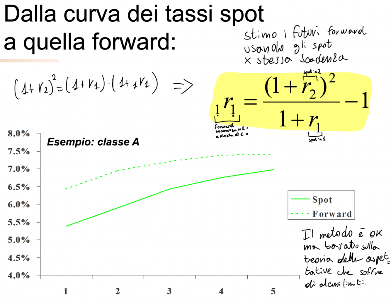 Ricavando la curva dei tassi forwad da quella spot. Buon metodo ma basato sulla teoria delle aspettative che ha alcuni limiti.