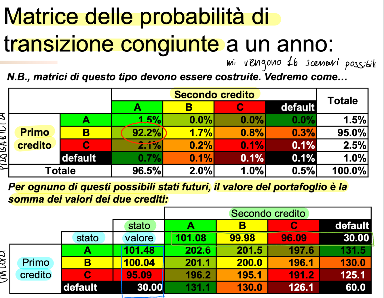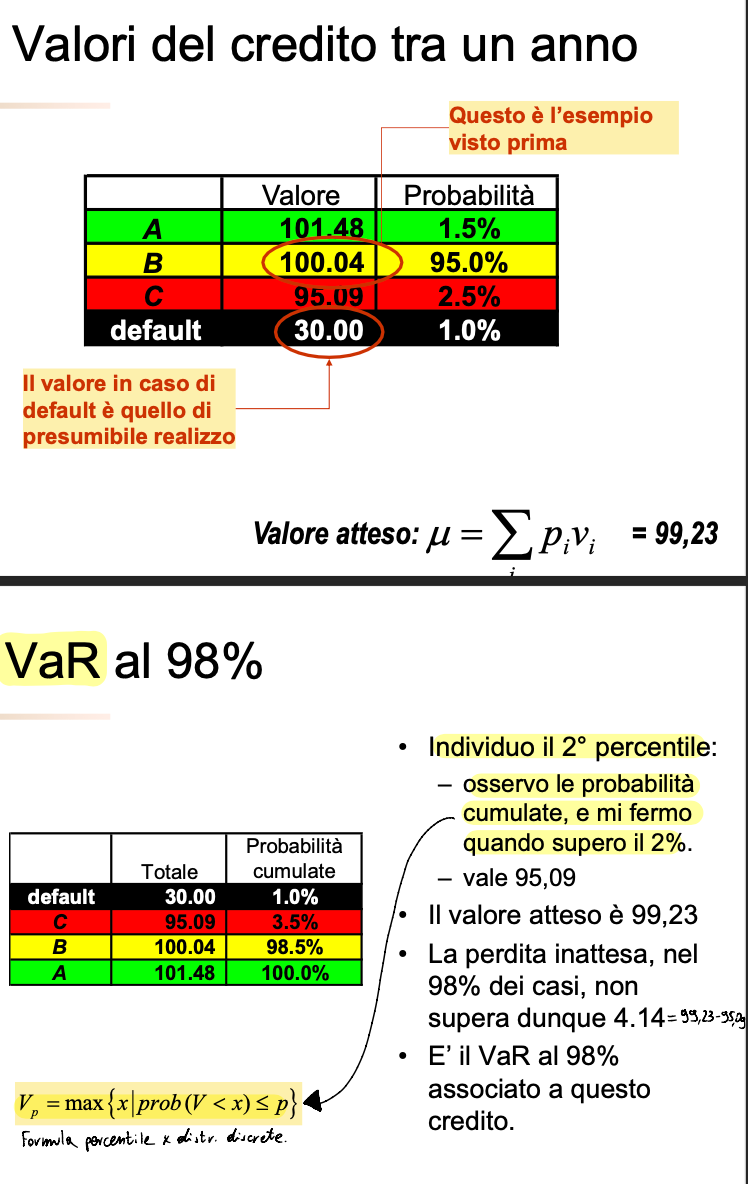 2. calcolare un valore atteso, pesando i valori del credito in ogni rating class per la loro probabilità di esserci dentro