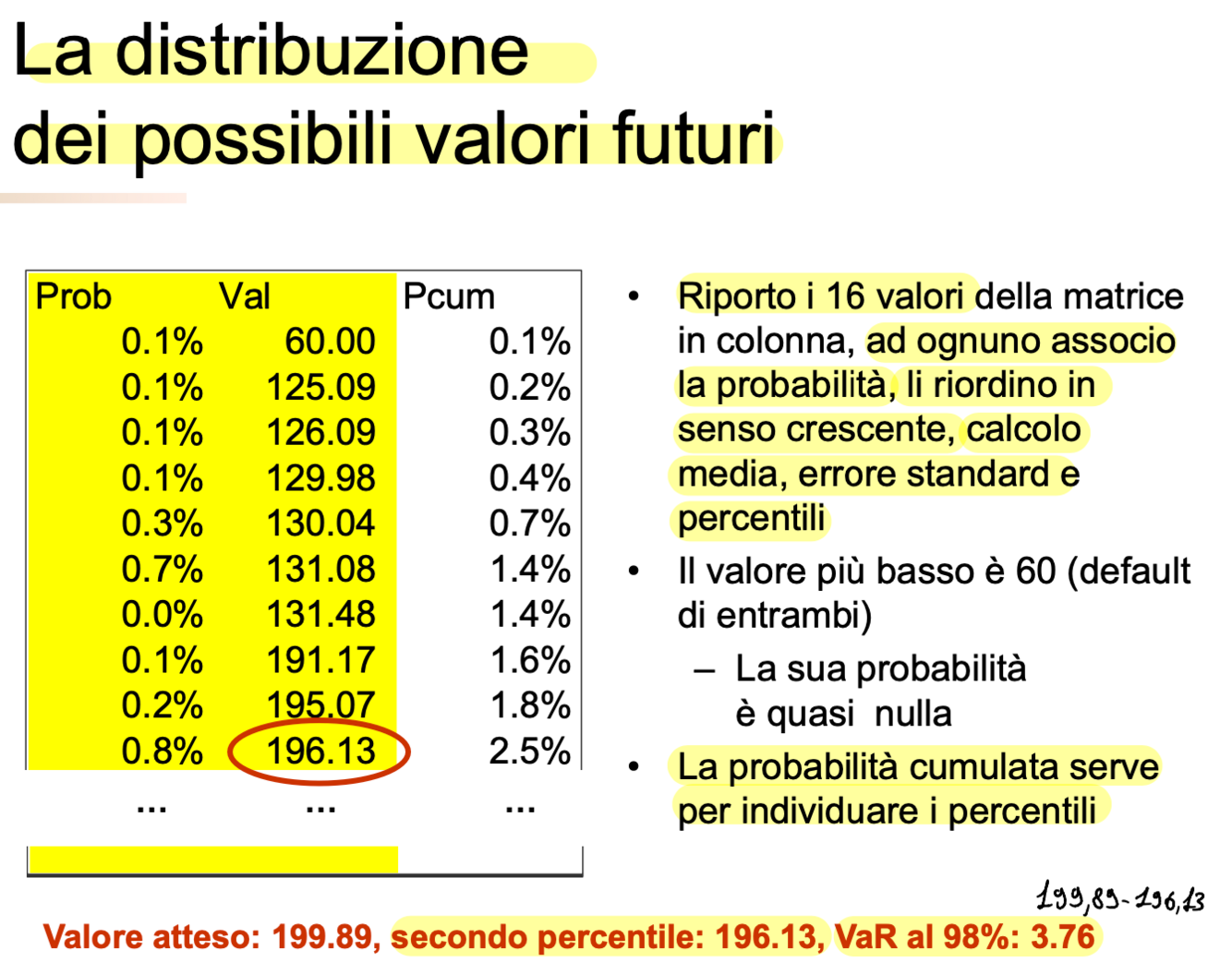 1. costruire la distribuzione dei valori futuri, ordinando gli scenari dal peggiore al migliore