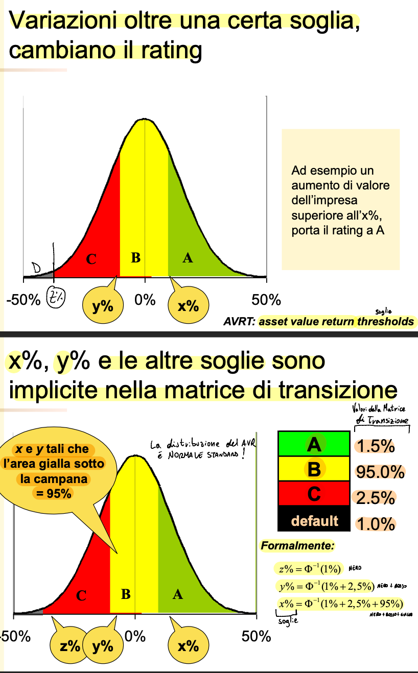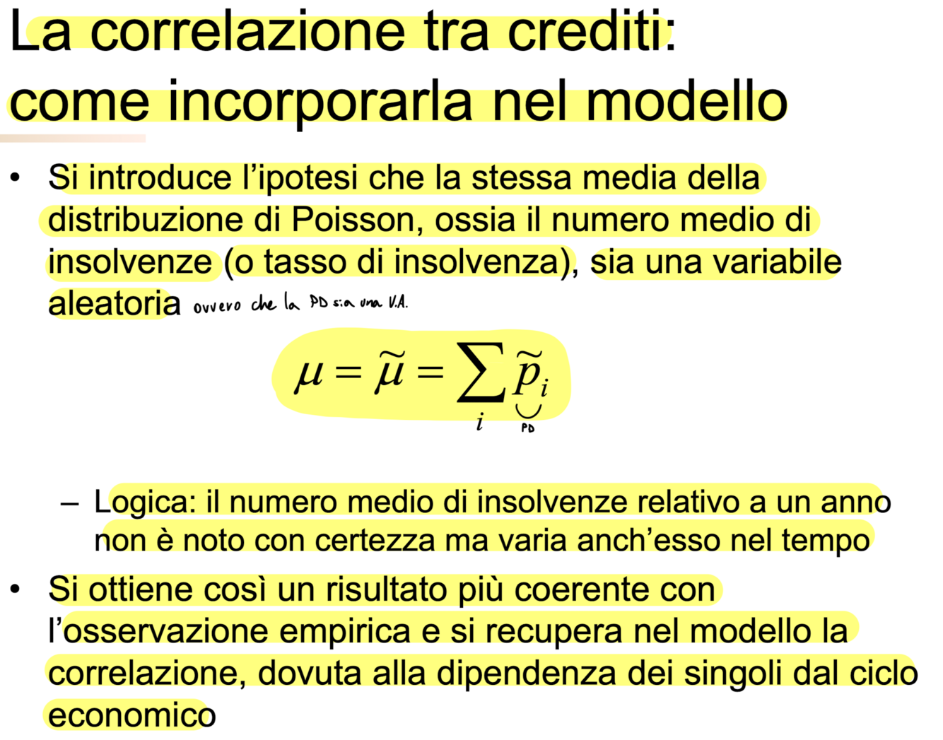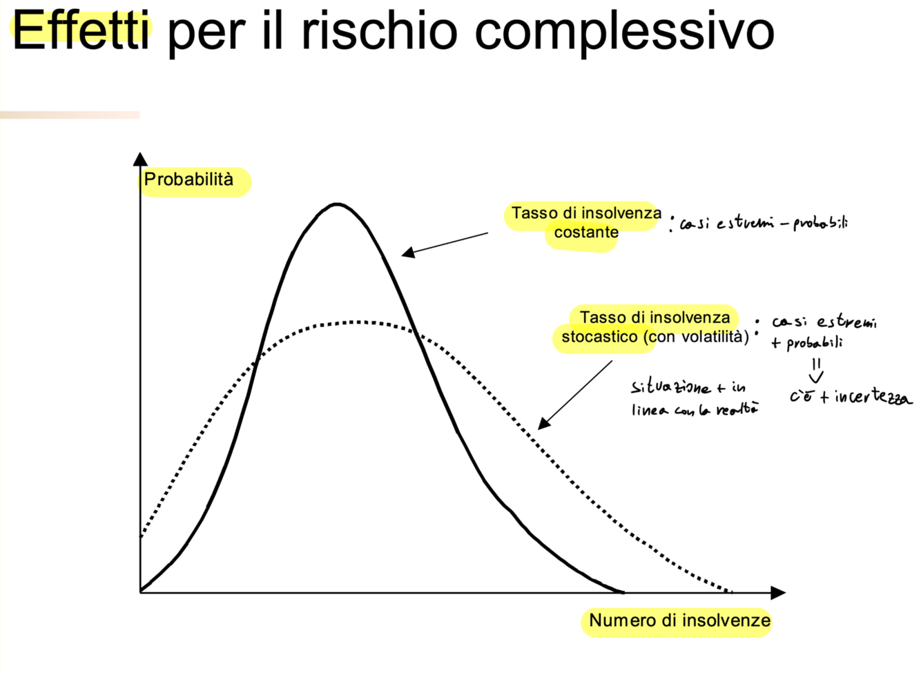 * Rispetto al caso in cui le probabilità di default sono note a priori (tasso di insolvenza costante) ora le fonti di rischio sono due: