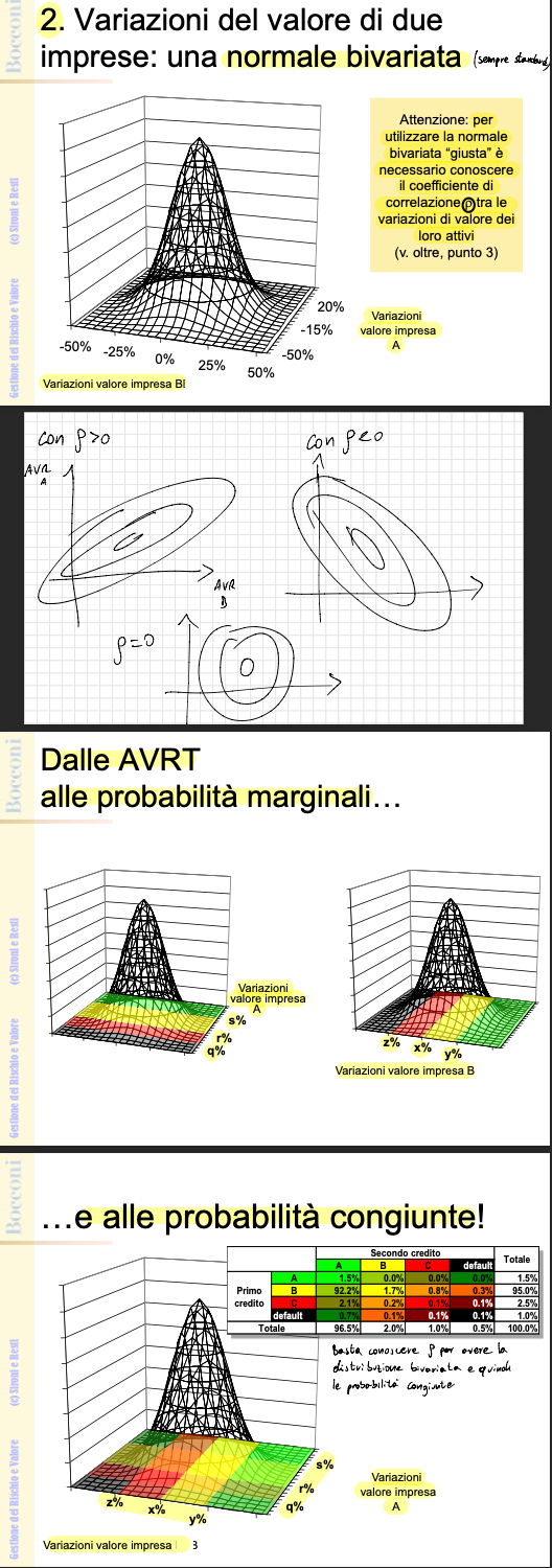 Con una normale bivariata standard, ma per scegliere quella giusta dobbiamo conoscere il livello di correlazione p. In questo modo possiamo passare dalle AVRT alle probabilità marginali di ciascuna azienda e poi fonderle per passare alle probabilità congiunte
