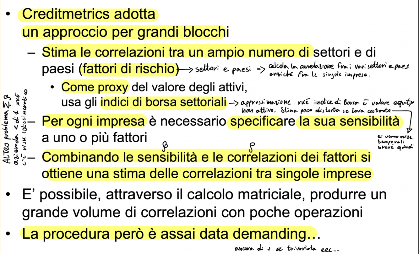 * Stima le correlazioni tra un ampio numero di settori e di paesi (fattori di rischio): calcola la correlazione fra vari settori e pasi anziché fra singole aziende