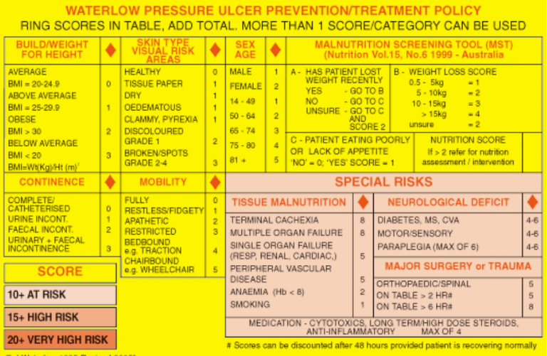 Six factors contribute to risk of and intensity of pressure ulcer: