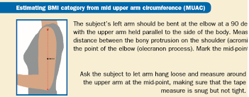 <23.5 cm, BMI is likely to be <20 kg/m2 (underweight)