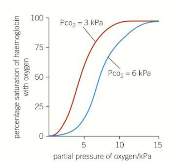 at high p(CO2), haemoglobin gives up oxygen more easily