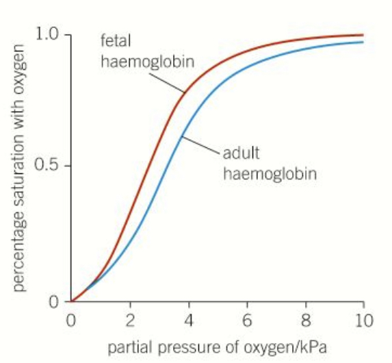 fetal haemoglobin has a higher affinity for oxygen