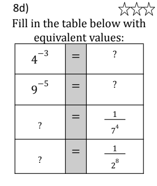 8th Grade Math Star Cards
