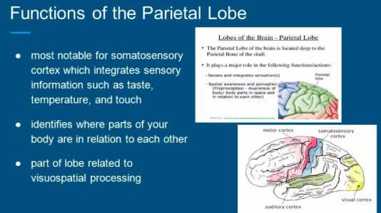 What is the function of the parietal lobes?
