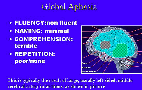 • MCA so large stroke/infarct here can cause global aphasia so no verbal language at all