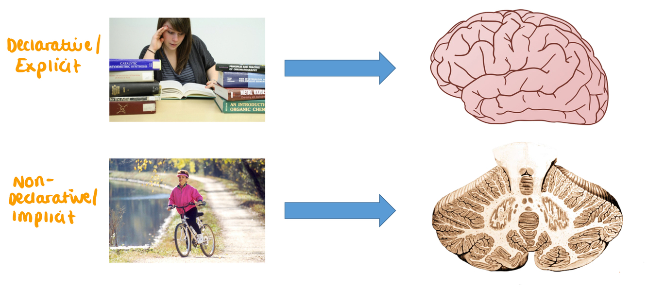 - Declarative: factual information and is stored in cerebral cortex