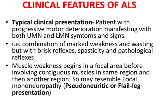 Has a mixture of upper and lower motor neurone signs