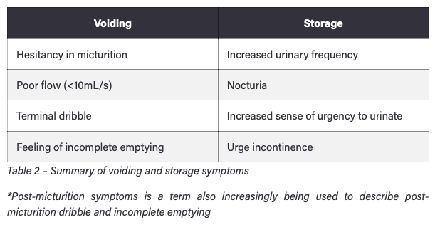 What are some important questions/examinations to do when a patient presents with LUTS?