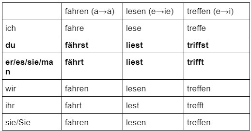 Fahren ( conducir , viaje ) Du fährst , Er fährt