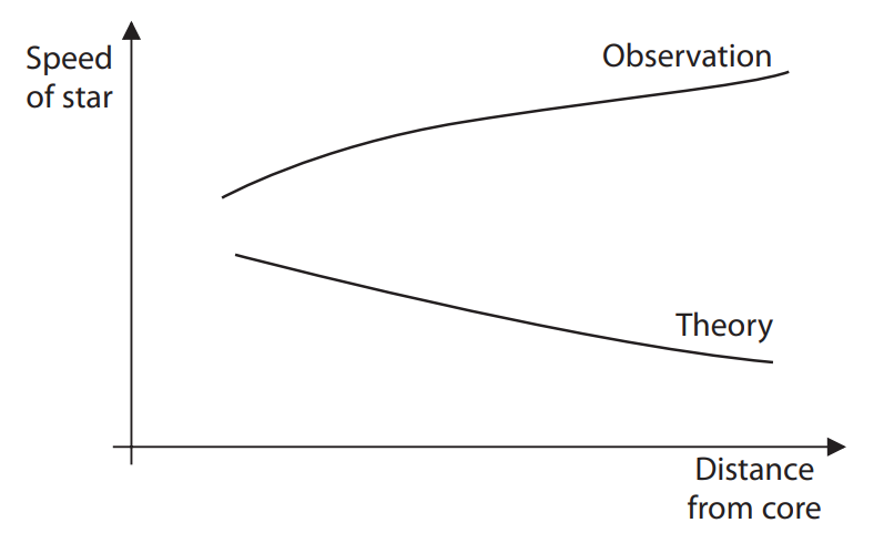 -the theory suggests that stars near the edge should travel slower but observation shows that they actually travel faster