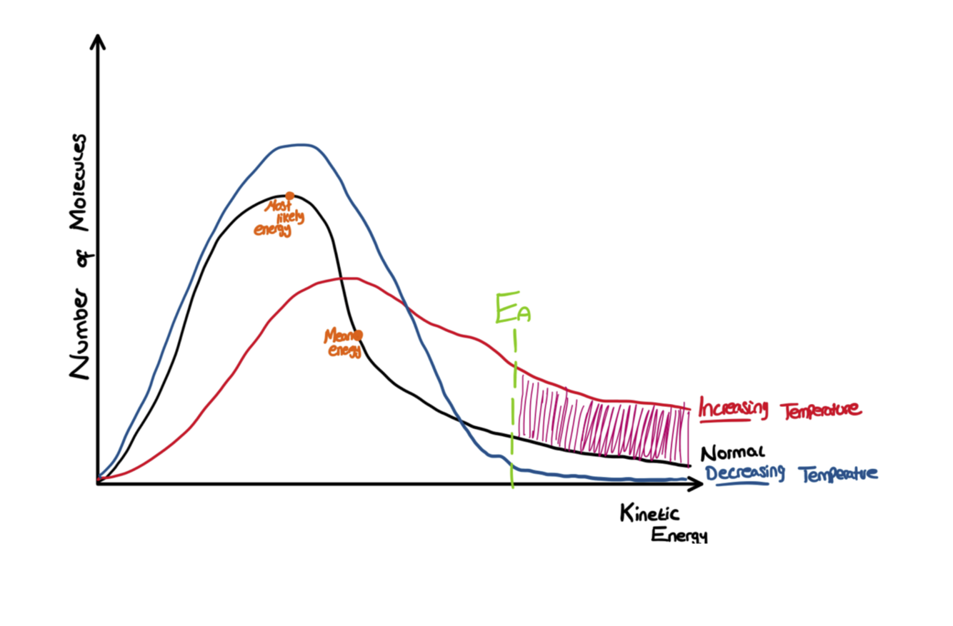 3- Meaning a greater proportion molecules have energy that’s exceeds than the activation energy
