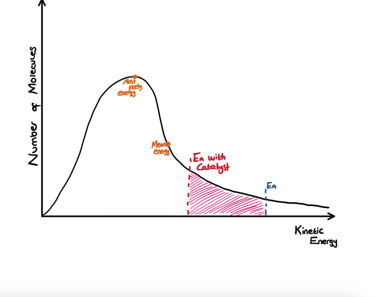 Describe and show how a catalyst affects a Maxwell-Boltzmann distribution graph