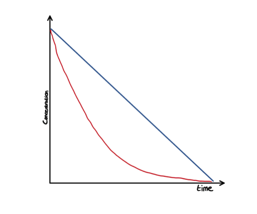 On a concentration-time graph, what does it mean if a reactant has constant consecutive half-lives