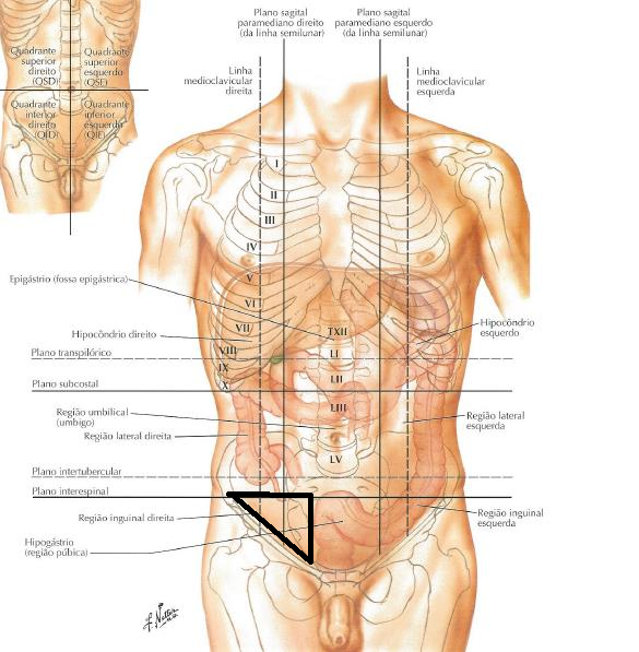 • Med.: Margem lateral do reto • Sup.: Linha imaginária que une as • as EIAS • Inf.: Ligamento inguinal