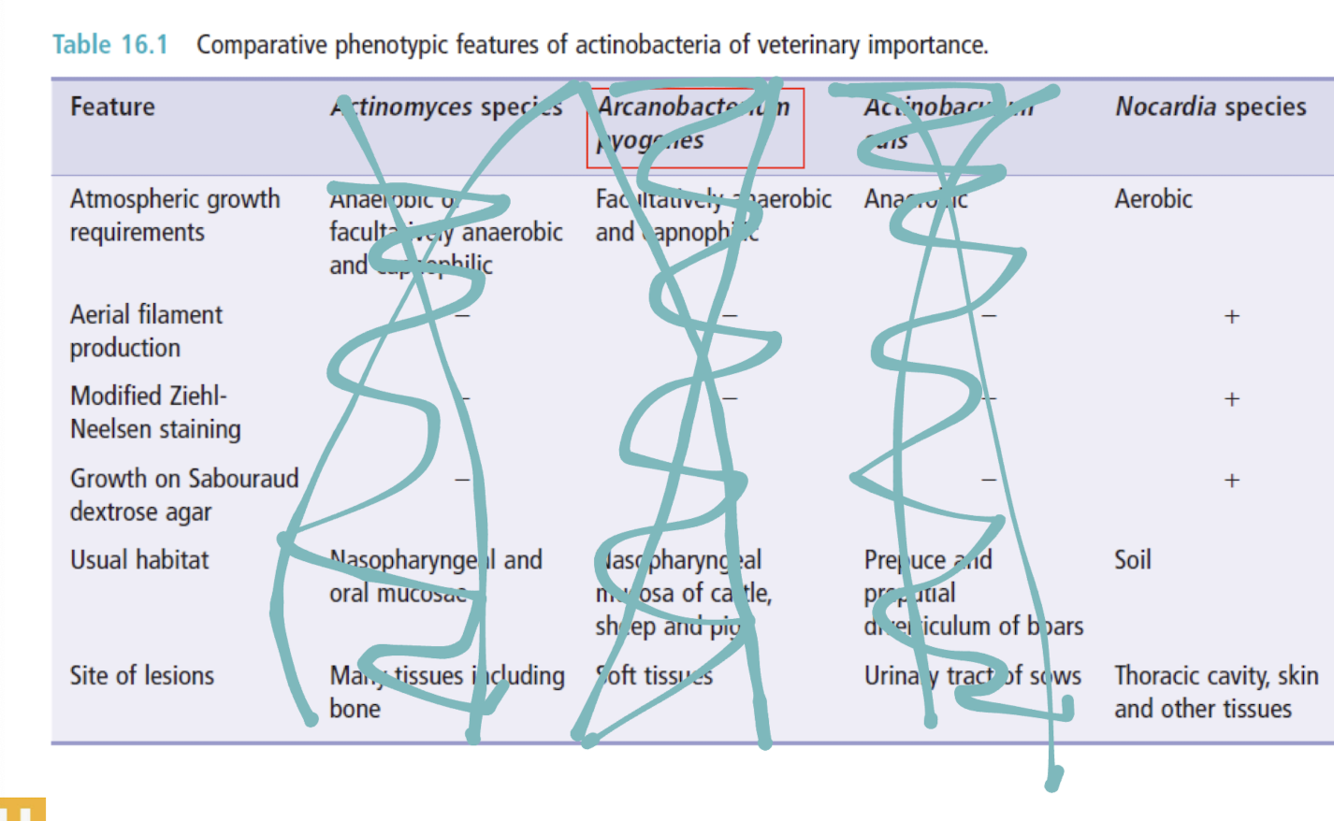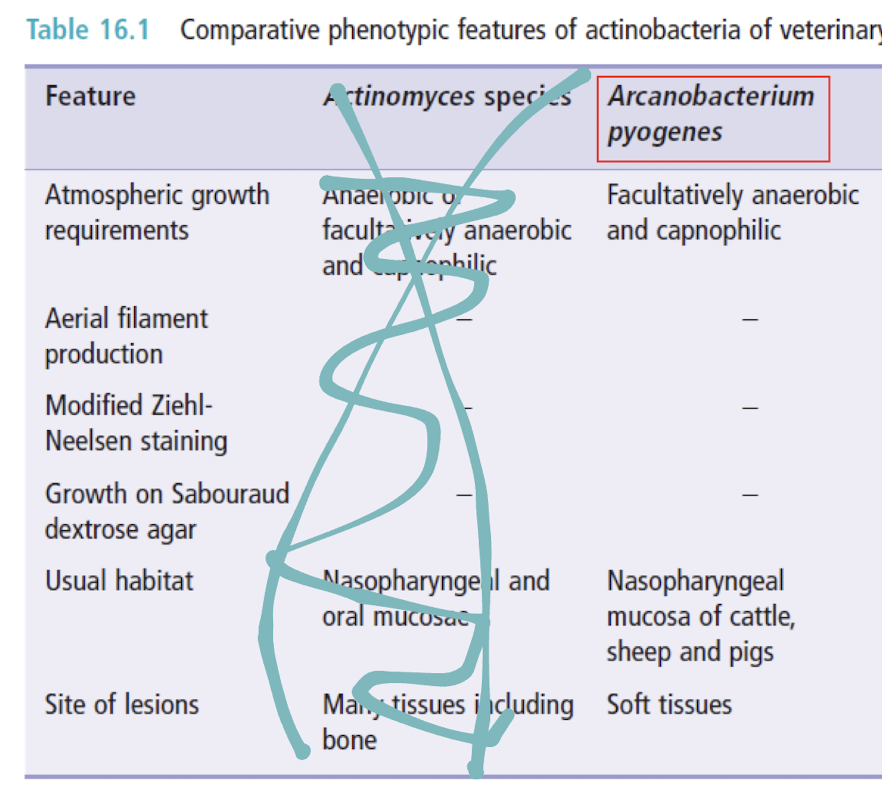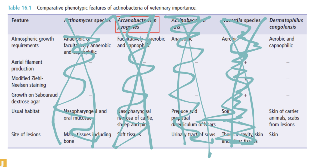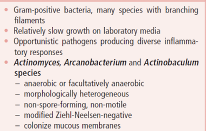 What are the characteristics of acinobacteria within the strains actinomyces, arcanobacteriumm and actinobaculum?