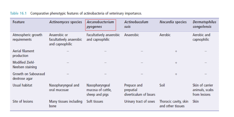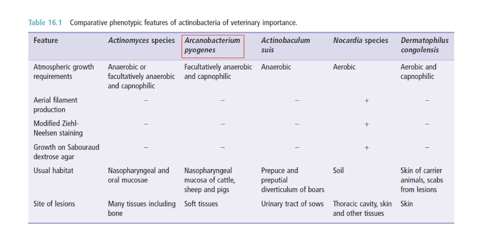 For trueperella pyogenes, what are the characteristic phenotypic features?