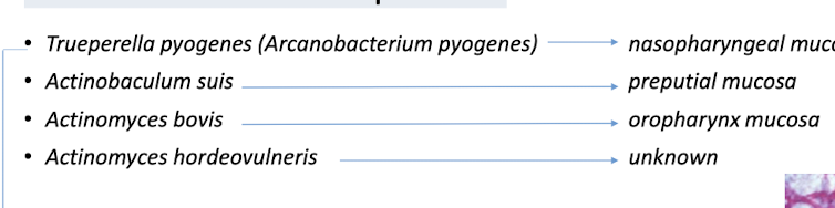 Where are each of these Actinomyces, Arcanobacterium and Actinobaculum species found in the host?