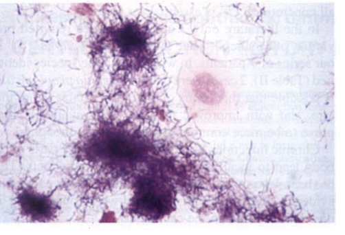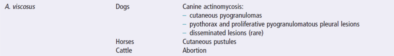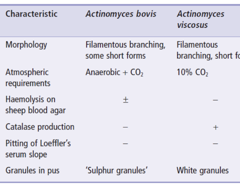 Which actinomyces forms sulfur granules in pus? Which have white granule formation?