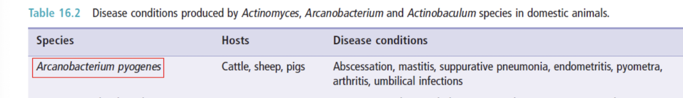 What are the disease conditions of animals with Truperella pyogenes? What are the usual hosts?