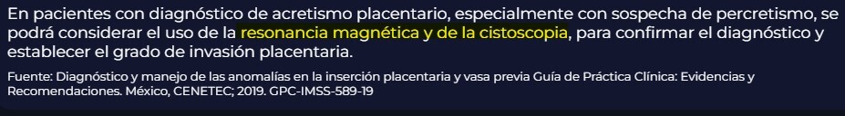 Estudios confirmatorios a solicitar para establecer el grado de invasión placentaria ante la sospecha de percretismo antes del parto