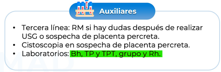 Laboratoriales complementarios a solicitar a pacientes con acretismo placentario