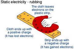 When two insulators are rubbed together surface electrons are transferred from one material to another. The material that gains electrons will gain a negative charge. The material that loses electrons will be left with a positive charge.