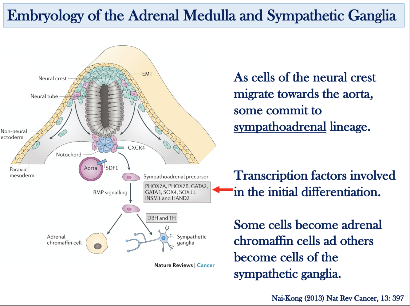 What are the embryological origins of the adrenal medulla and sympathetic ganglia?