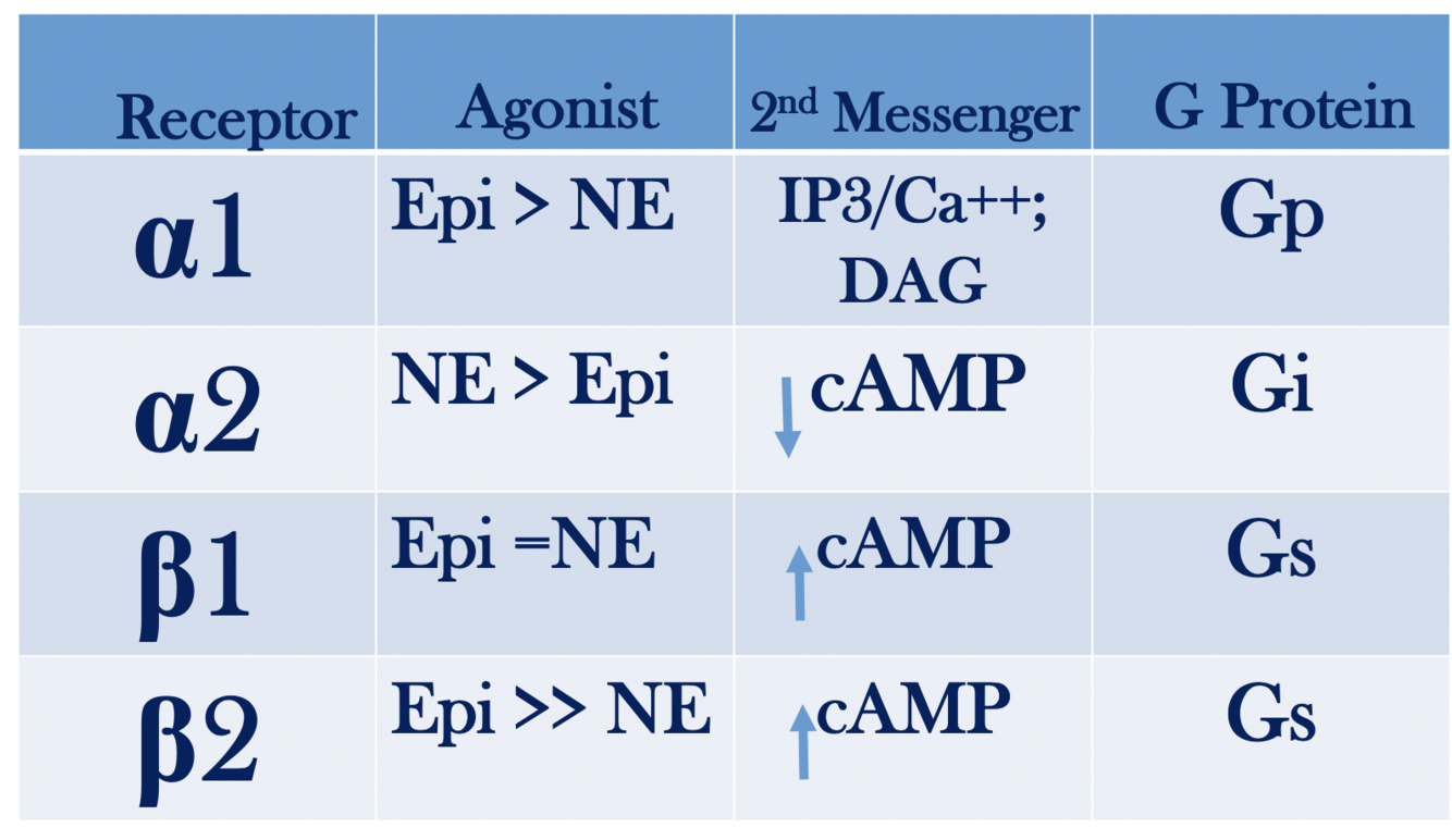 Alpha 1 and beta 2 receptors bind […] with greater potency.