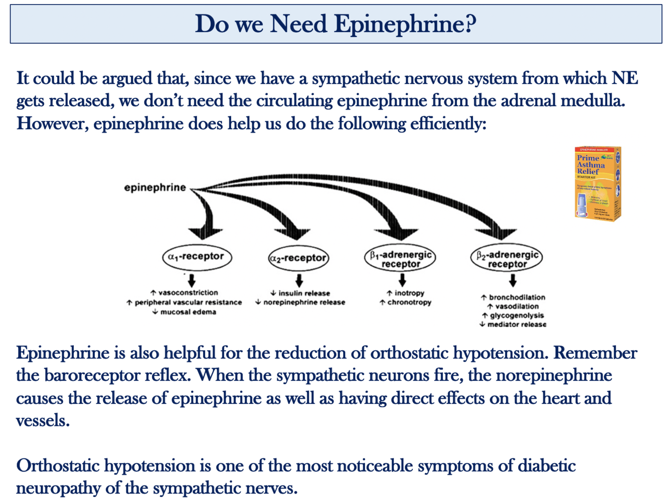 Epi helps the SNS signaling function more efficiently and is helpful for reduction of orthostatic hypotension