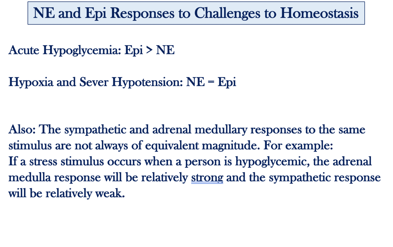 What are some things that will trigger the hypothalamus to stimulate sympathetic neurons to act on the adrenal medulla to release epinephrine and norepinephrine?