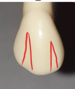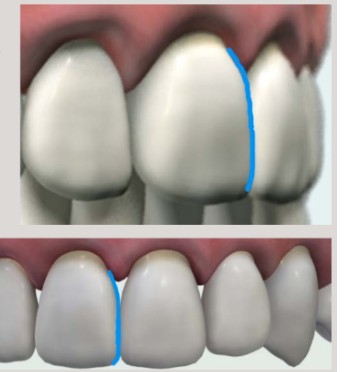 Changes in angulation of a tooth as it emerges from the gingiva, moving towards the incisal edge