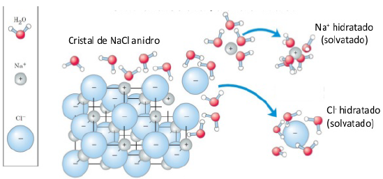 A água tem capacidade de solvatar íons.