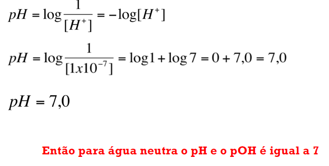 Qual é o pH e pOH para água neutra?