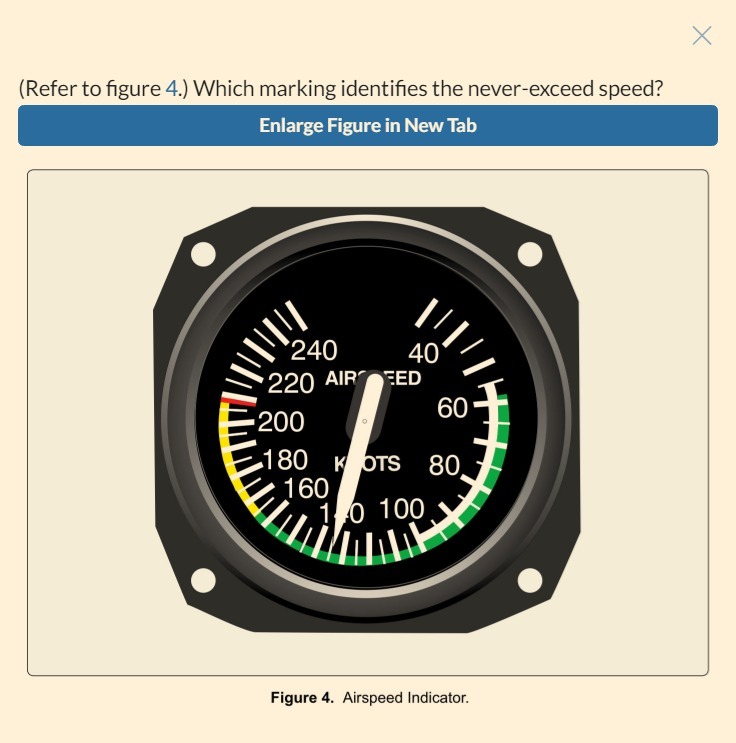 (Refer to figure 4.) Which marking identifies the never-exceed speed?