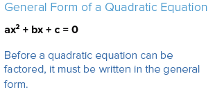 The General Form is ax2 + bx + c = 0, where a, b, and c are constants