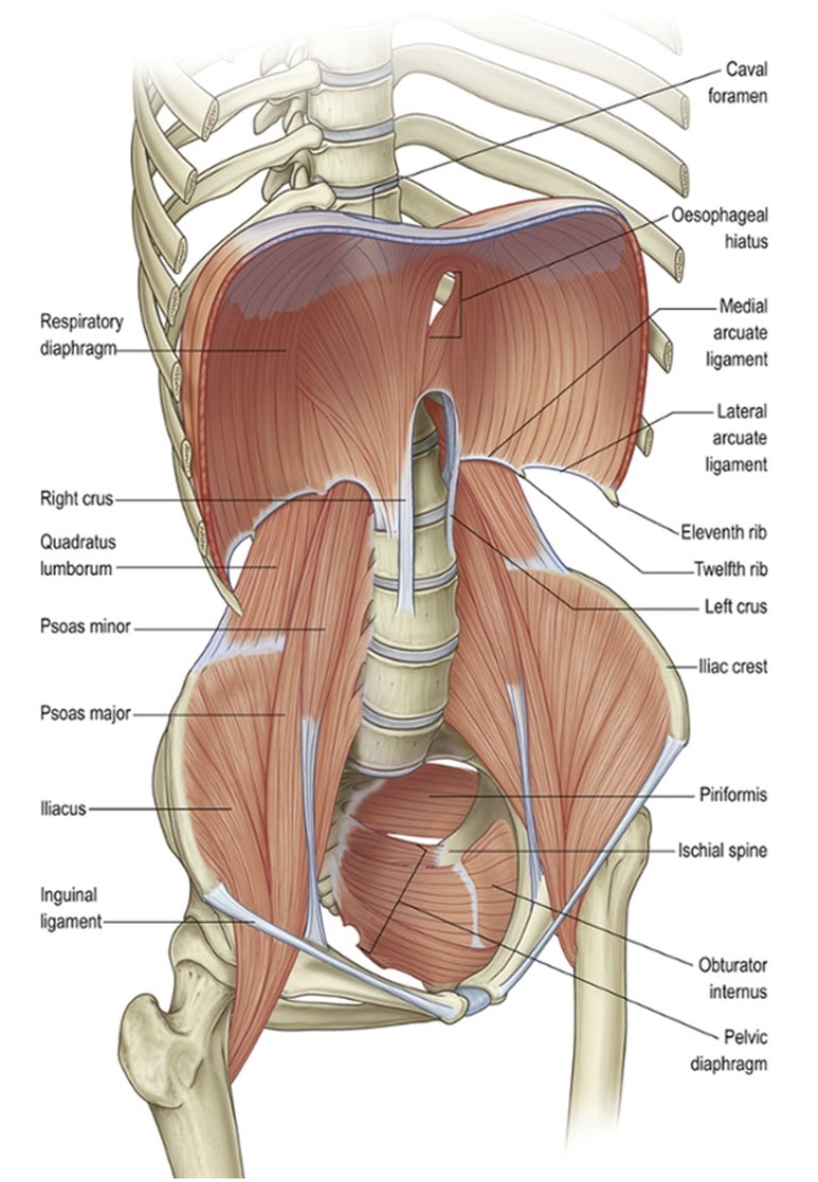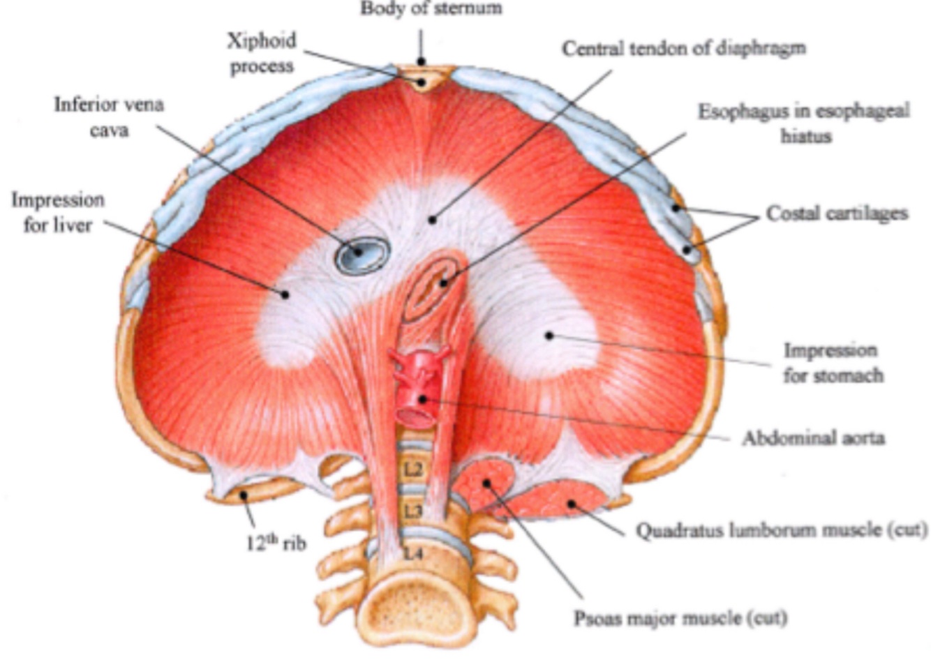 V/F: La paroi abdominale postérieure est continue avec la paroi thoracique postérieure au niveau de l’attache postérieure du diaphragme respiratoire
