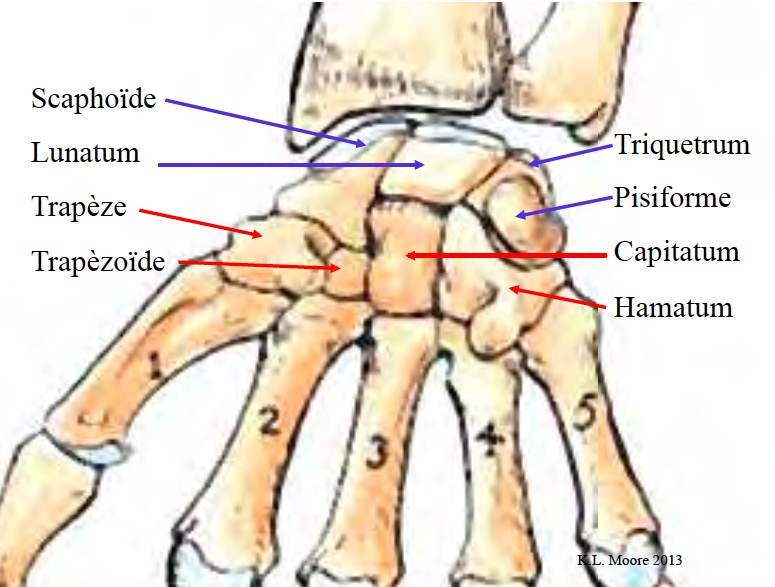 Au niveau du poignet (environ), on trouve les carpes, il y en a 8.