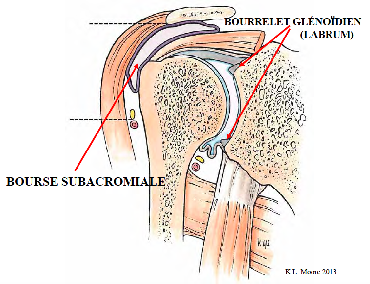 Il y a aussi la bourse subacromiale qui va glisser la tête de l’humérus sous l’acromion lorsqu’on lève le bras.